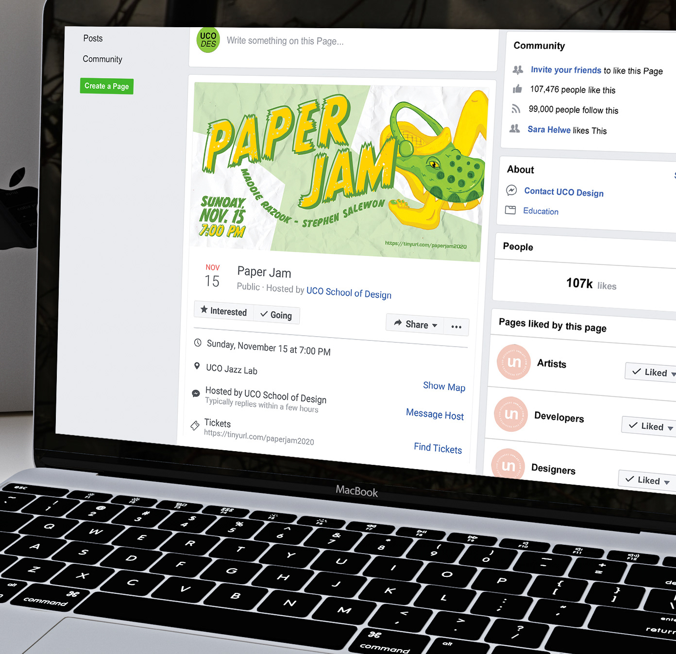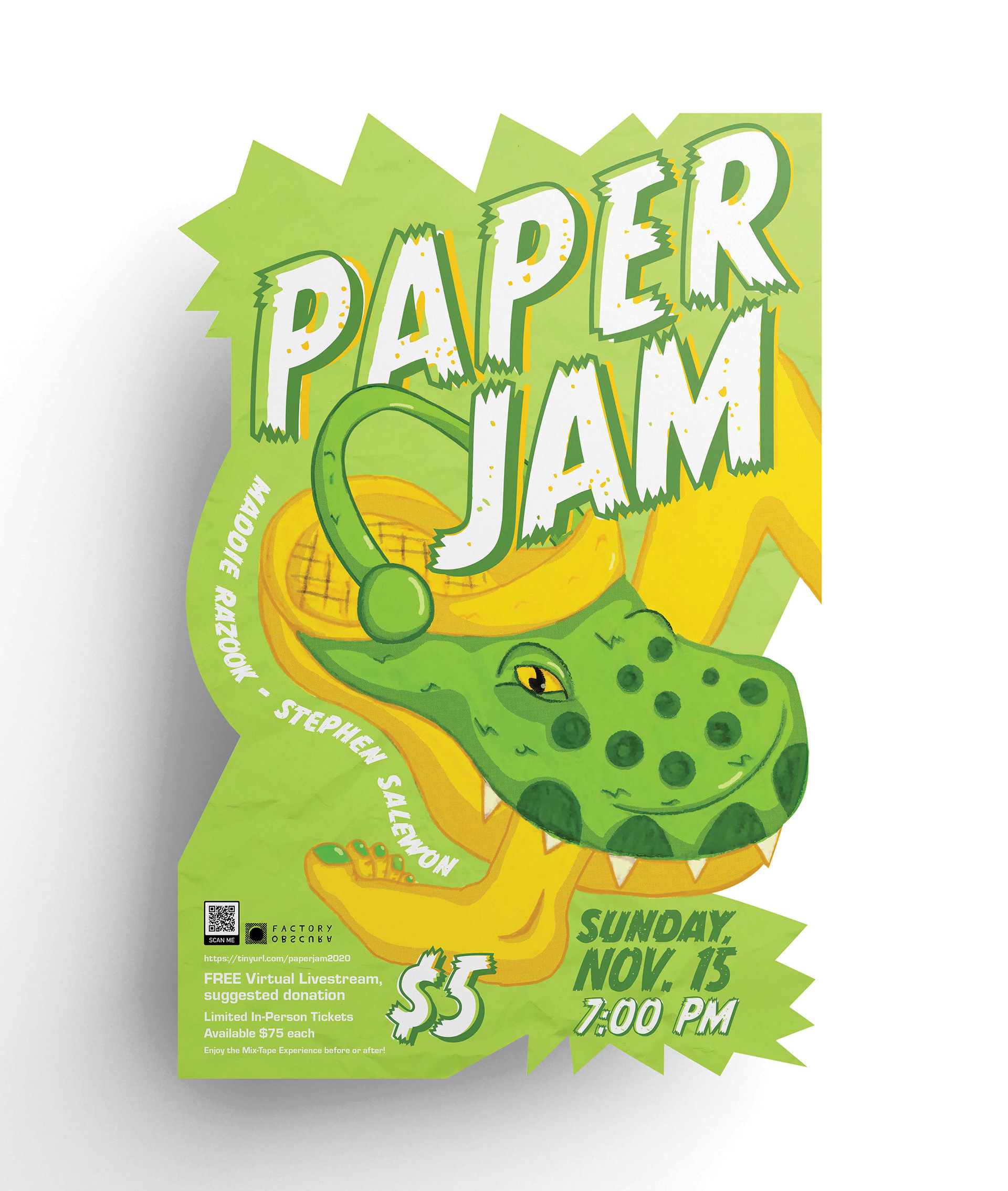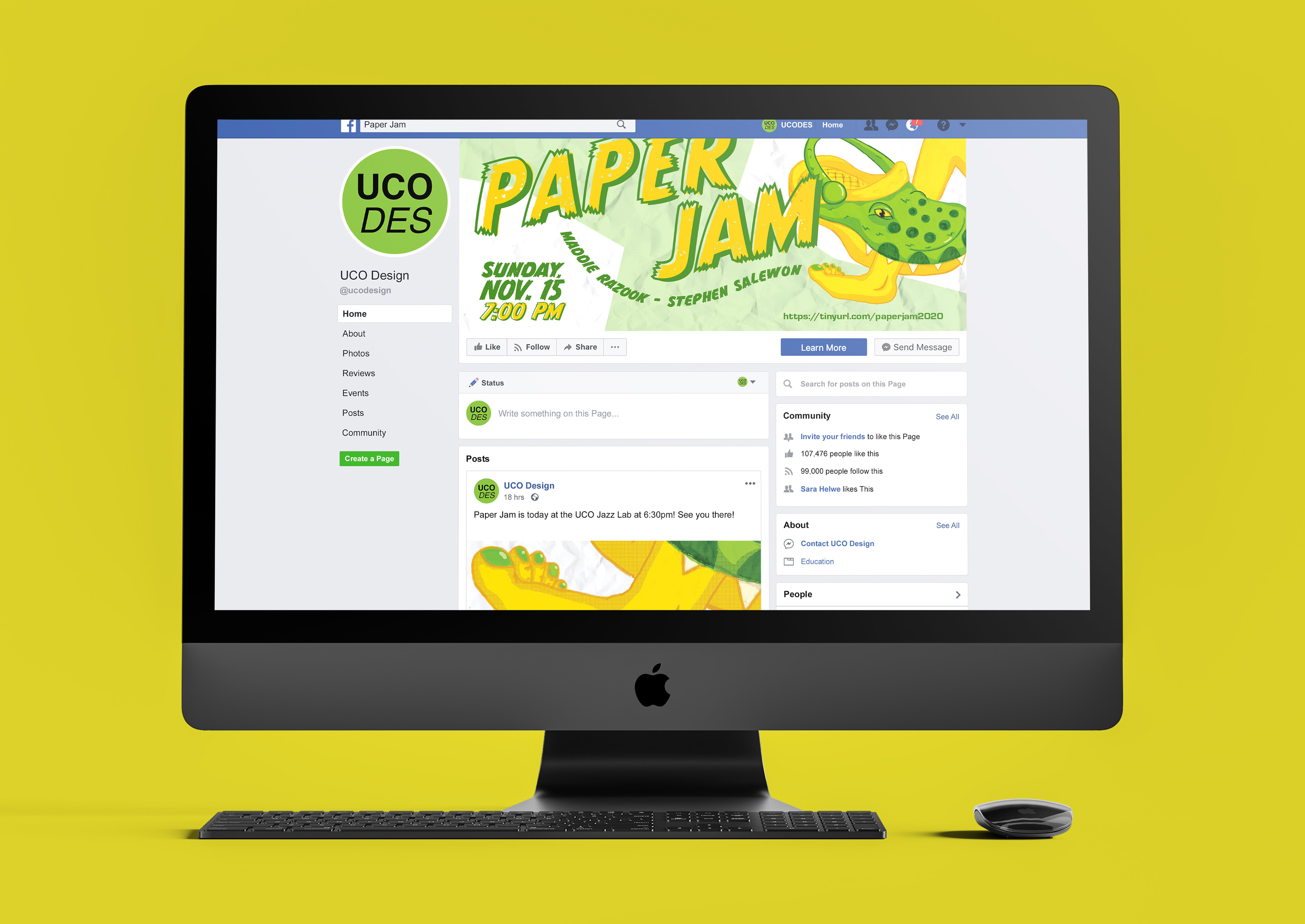 A fun, energetic poster and social media campaign promoting Paper Jam, an annual fundraising concert for the UCO School of Design